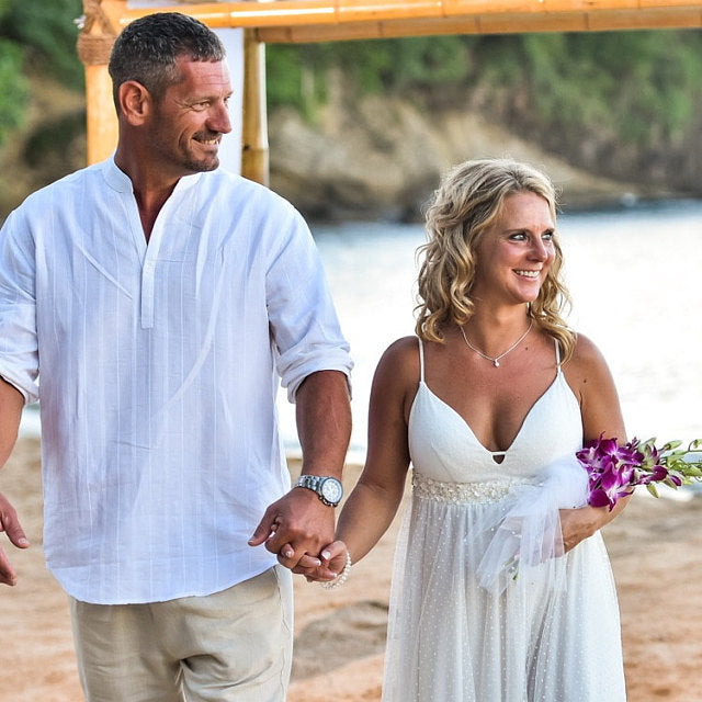 Sharon was amazing! She custom made me the most perfect beach wedding dress for my dream wedding in Saint Lucia! It fit perfectly when it arrived to me by mail and the fabric was very high quality, wrinkle free for travel to and from the US, and free flowing! Thank you for helping make this dream wedding so beautiful Sharon!